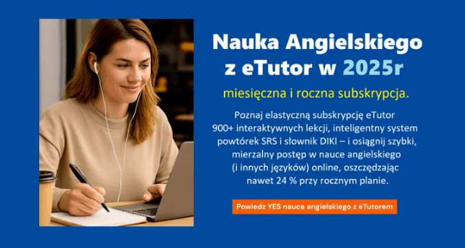 Angielski eTutor w 2025r – miesięczna i roczna subskrypcja (promocja).